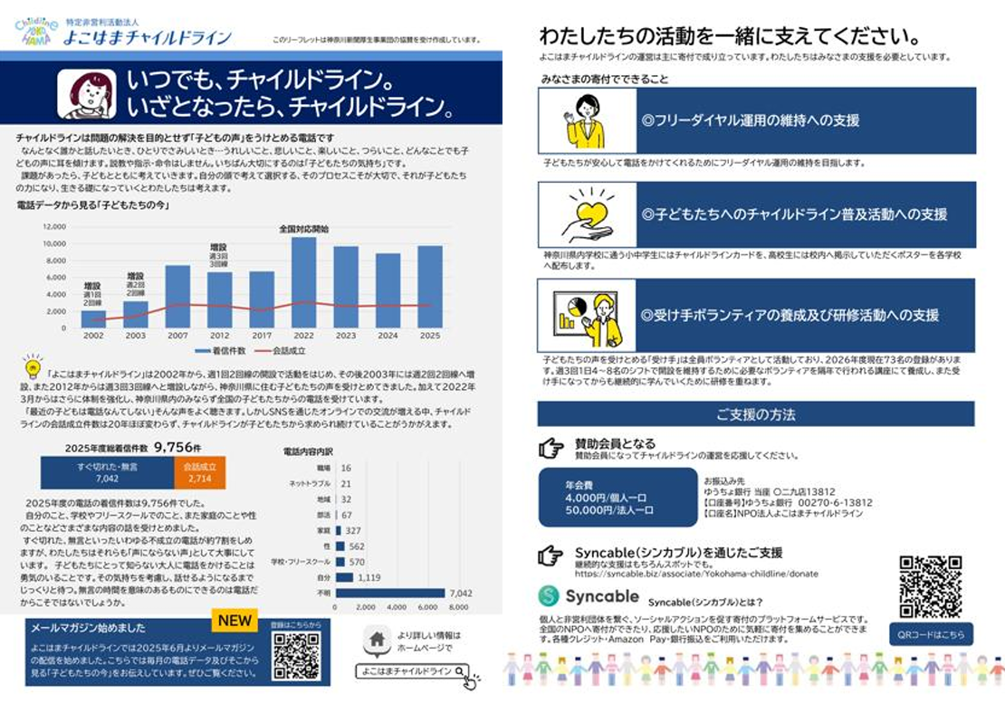 いつもよこはまチャイルドラインの活動を応援いただき誠にありがとうございます。当団体は、2019年に、ご…